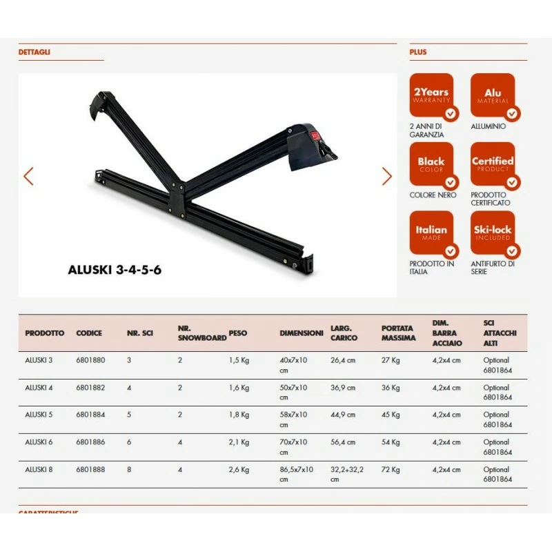 - 5 versioni per ogni esigenza: da 3 sci o 2 snow board a 8 sci e 4 snow board