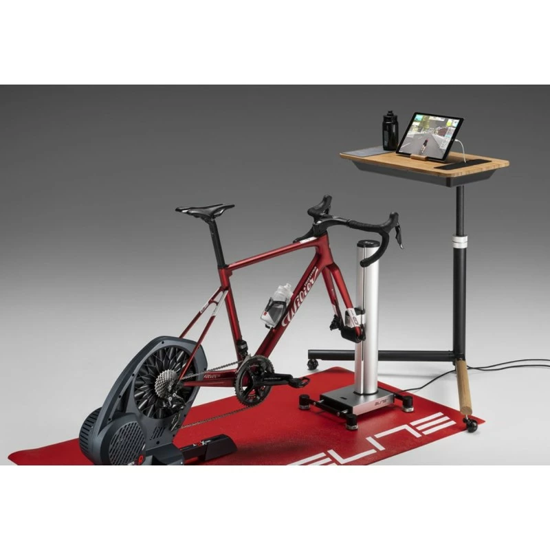 Costituito da un ampio piano d’appoggio con vano interno per alloggiare i cavi di alimentazione, il nuovo tavolino di Elite ti permette di posizionare comodamente PC portatili, tablet e smartphone da usare durante l’allenamento.